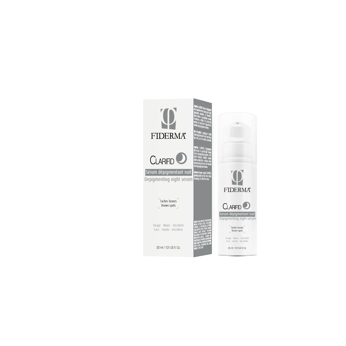 Properties: CLARIFID Depigmenting night serum has been specifically designed for skin hyperpigmentations. Its High-Tech formula reduces existing dark spots and prevents the formation of new hyperpigmentations, for a long lasting skin uniformity and radiance.
