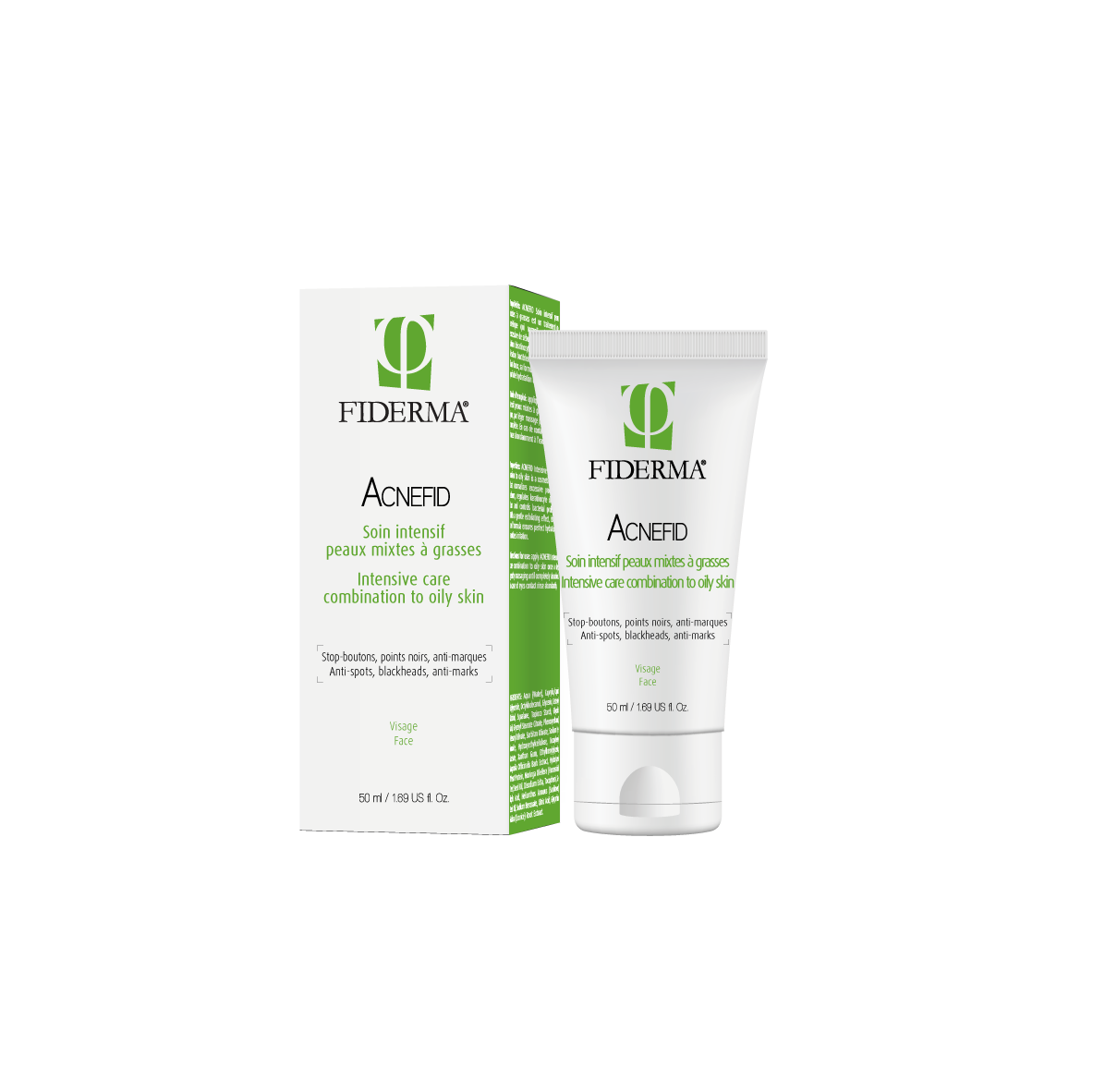Properties: ACNEFID Intensive care combination to oily skin is a cosmetic treatment that normalizes excessive production of sebum, regulates keratinocyte differentiation and controls bacterial proliferation. With a gentle exfoliating effect, its balanced formula ensures perfect hydration and soothes irritation.